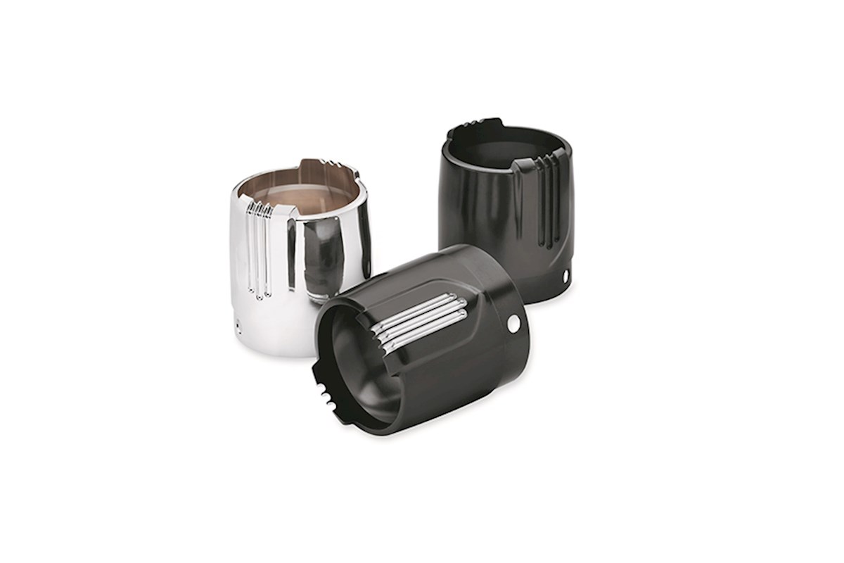 Show your complete disregard for the rules. Anything but traditional, these forged aluminum muffler end caps add a new rebellious look to your bike. The deep longitudinal lines add visual length to the bike's profile, and the big, beefy look is the perfect complement to the Street Cannon 4.5" mufflers. Available in your choice of chrome, machine cut anodized black or full black finishes, this kit includes two end caps and all required mounting hardware. Fits '17-later Touring models equipped with 4.5" Screamin' Eagle Street Cannon mufflers. Does not fit CVO Touring mufflers.