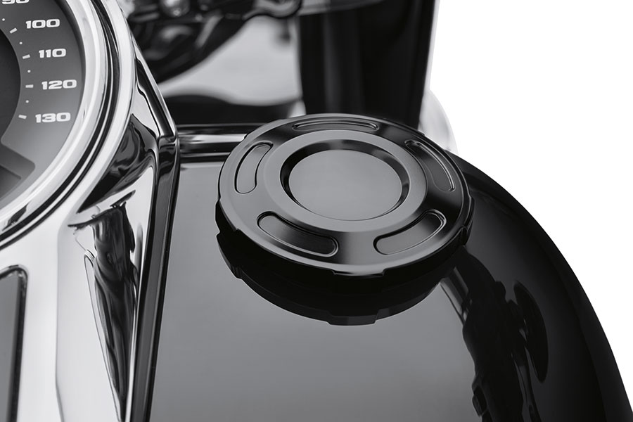 Does not fit models equipped with Original Equipment locking or tethered fuel caps or Softail models with Low-Profile Chrome Fuel Tank Console P/N 71208-07.