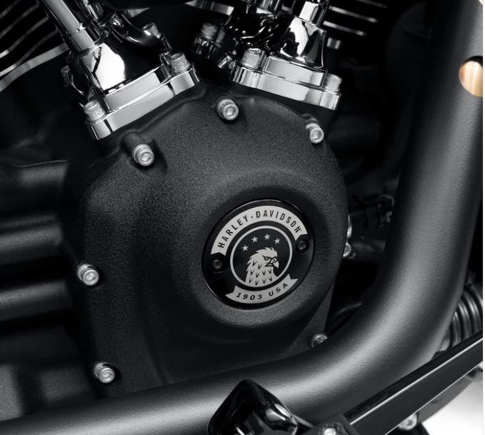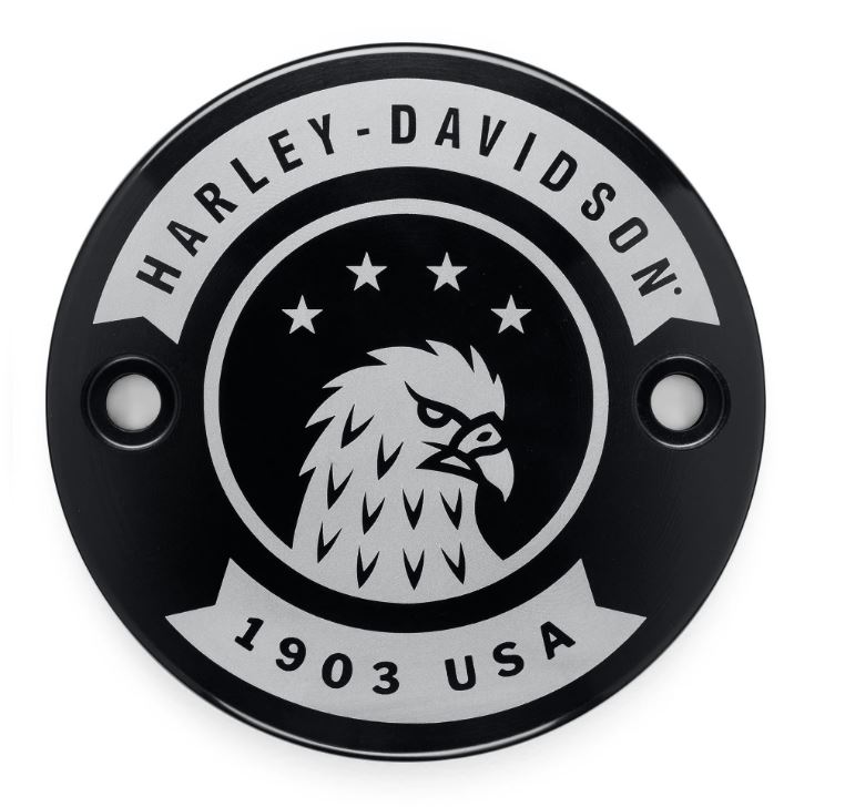 Twee symbolen van vrijheid en kracht komen samen in dit prachtige decoratieve onderdeel. Een gestileerde adelaar en het Bar & Shield-logo zijn lasergeëtst in zwart geanodiseerd billet aluminium om briljante highlights met scherpe details te krijgen.