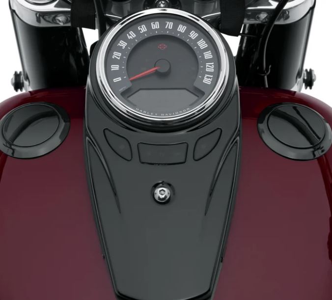 • De tankdop aan de linkerkant is een decoratief stuk dat de originele uitrusting vervangt en er identiek uitziet als de verzonken tankdop wanneer hij verzegeld is
