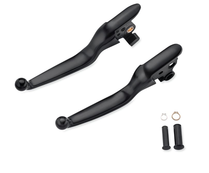 Zwart is het nieuwe chroom. Deze hendels passen mooi bij je zwarte accessoires stuur of om de volledige transformatie van jouw Harley compleet te maken.