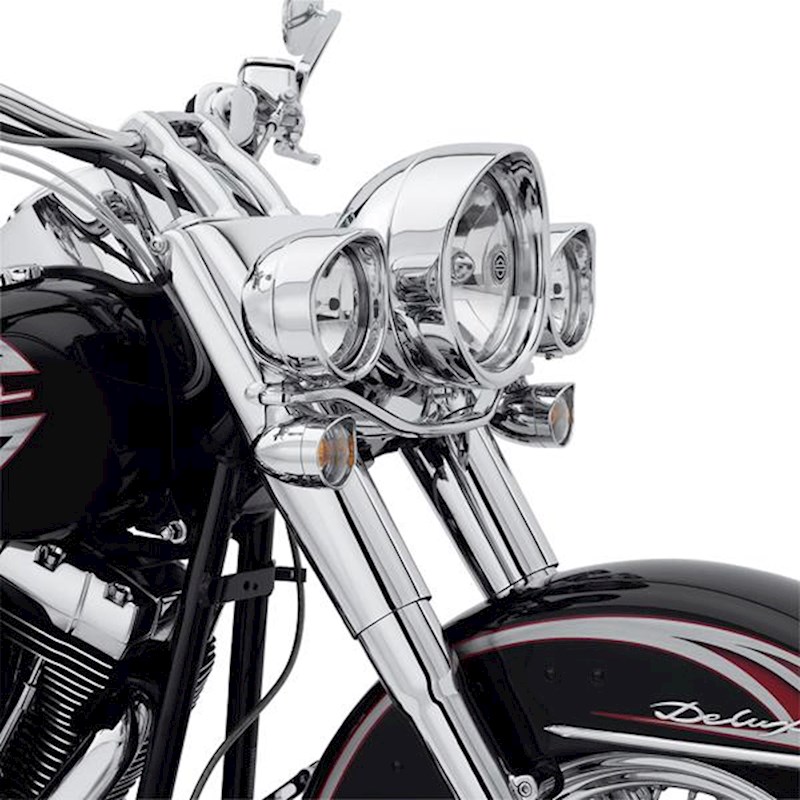 These chrome-plated Visor Style Trim Rings recess the headlamp into the housing and add a traditional "eyebrow" design to the headlamp shell. The trim ring stretches the profile of the bike for a long, lean appearance. Add matching Visor Style Passing Lamp and Turn Signal Trim Rings for a true custom look.