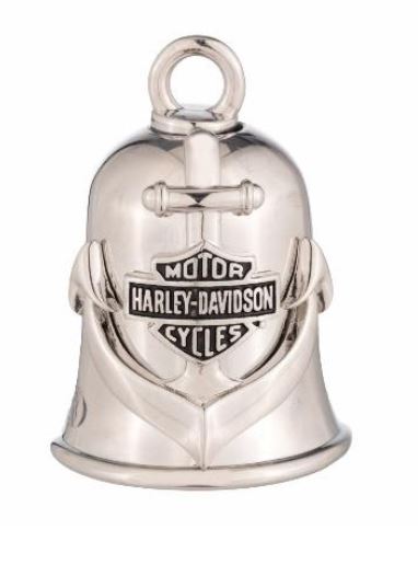 Harley-Davidson® "B&S Anchor" Geluksbrenger voor aan de motor. De bel is gemaakt van metaal en is voorzien van een touwtje om de bel mee op te hangen (voor een veilige bevestiging adviseren wij de bel vast te maken met een tie wrap) Inclusief vilten cadeauverpakking en een kaartje met de legende van de Ride bells.