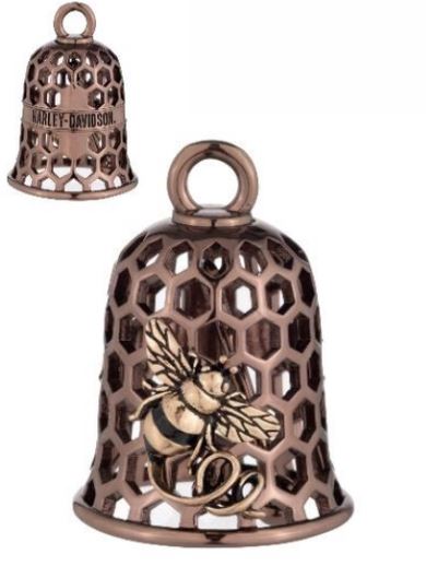 Harley-Davidson® "BumbleBee" Geluksbrenger voor aan de motor. De bel is gemaakt van metaal en is voorzien van een touwtje om de bel mee op te hangen (voor een veilige bevestiging adviseren wij de bel vast te maken met een tie wrap) Inclusief vilten cadeauverpakking en een kaartje met de legende van de Ride bells.