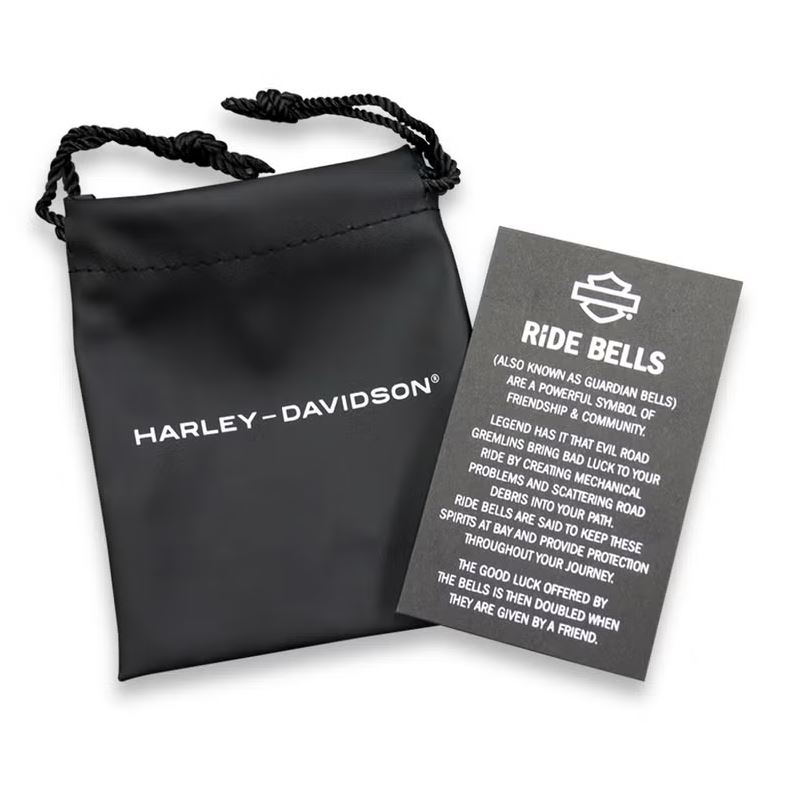 Harley-Davidson® "Hot Pink" Geluksbrenger voor aan de motor. De bel is gemaakt van metaal en is voorzien van een touwtje om de bel mee op te hangen (voor een veilige bevestiging adviseren wij de bel vast te maken met een tie wrap) Inclusief vilten cadeauverpakking en een kaartje met de legende van de Ride bells.