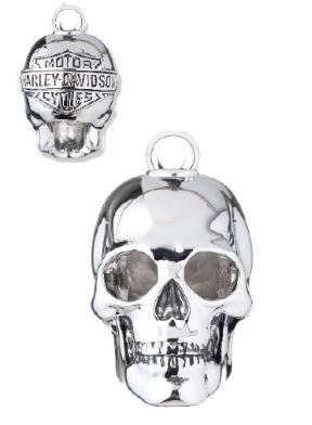Harley-Davidson® "Skull Head" Geluksbrenger voor aan de motor. De bel is gemaakt van metaal en is voorzien van een touwtje om de bel mee op te hangen (voor een veilige bevestiging adviseren wij de bel vast te maken met een tie wrap) Inclusief vilten cadeauverpakking en een kaartje met de legende van de Ride bells.