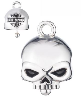 Harley-Davidson® "Willie G Skull" Geluksbrenger voor aan de motor. De bel is gemaakt van metaal en is voorzien van een touwtje om de bel mee op te hangen (voor een veilige bevestiging adviseren wij de bel vast te maken met een tie wrap) Inclusief vilten cadeauverpakking en een kaartje met de legende van de Ride bells.