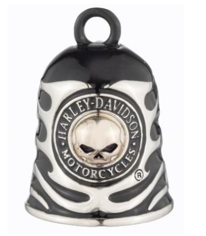 Harley-Davidson® "Willie G Tritone" Geluksbrenger voor aan de motor. De bel is gemaakt van metaal en is voorzien van een touwtje om de bel mee op te hangen (voor een veilige bevestiging adviseren wij de bel vast te maken met een tie wrap) Inclusief vilten cadeauverpakking en een kaartje met de legende van de Ride bells.