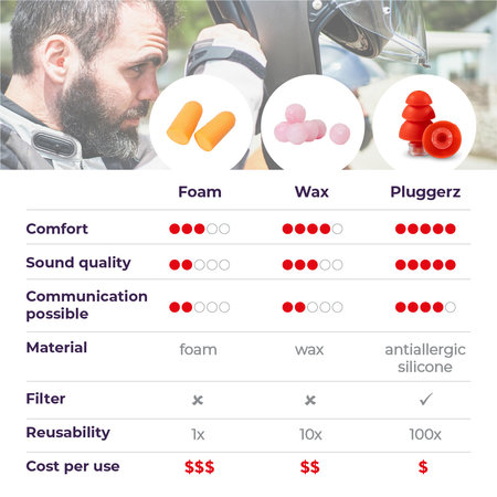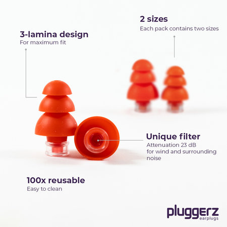 Geluid van de motor en windgeruis kan blijvende schade aan uw gehoor veroorzaken. De Pluggerz All-Fit Road is speciaal ontwikkeld om u hiertegen te beschermen. Het unieke filter dempt het schadelijk geluid tot een veilig niveau, terwijl u wel alle verkeerssignalen blijft horen. Ook handig voor cartrijders, coureurs en bestuurders van een cabrio! De Pluggerz All-Fit Road heeft een perfecte pasvorm en kan dus comfortabel onder een helm worden gedragen. Perfect draagcomfort door 3 lamellen en anti-allergisch siliconen materiaal Voor veelvuldig gebruik. Uniek filter. Inclusief handig opbergetui CE gecertificeerd en getest volgens EN 352-2 SNR = 23dB.Onderhoud Pluggerz zijn herbruikbare gehoorbeschermers. Ze beschermen alleen volledig, wanneer je ze zonder onderbreking draagt in lawaai. Dit natuurlijk duurzaam siliconenmateriaal is huidvriendelijk. De Pluggerz zijn eenvoudig te reinigen met water en zeep, zodat de hygiëne gewaarborgd blijft. Laat ze goed drogen alvorens je ze weer in de verpakking stopt.
