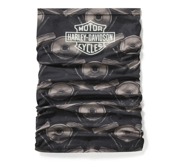 Koel rijcomfort en pure motorstijl komen samen in onze H-D® Evo Gaiter. Het polyester Coolmax®-breisel is lichtgewicht en vochtafvoerend, terwijl de extra lengte veelzijdigheid toevoegt. Stop hem in je jas en kraag om wind tegen te houden, of draag hem over je mond en neus om stof en insecten af te weren. Dit must-have motoraccessoire is afgewerkt met een allover print van onze Evolution® motor. Ken de geschiedenis: onze Evo-motor (1984-1999) gebruikte een volledig aluminium architectuur om meer vermogen, minder trillingen en een stillere werking te bieden dan zijn Shovelhead-voorganger.