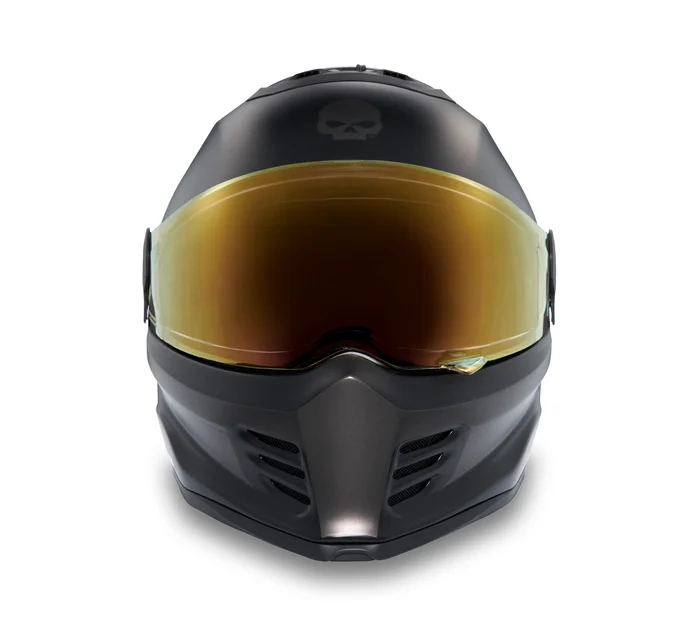 Een favoriet met maximale dekking die de creatieve nalatenschap van Willie G. Davidson viert is hier op onze H-D Division X15 Full Face Skull Graphic Helm. De low-profile shell is ontworpen om zowel lift als turbulentie te minimaliseren voor een soepelere, stillere en stabielere rit. Voeg daaraan toe een handig gelaatsscherm zonder gereedschap, een ratelsysteem dat het gelaatsscherm stevig tegen de oogpoort trekt en een helderder zicht dankzij geavanceerde mistvrije technologie. Hij is esthetisch ontworpen met een licht getint gelaatsscherm, een gestroomlijnde matte afwerking en Willie G's veelgeprezen Skull graphic (zoom in voor een beter beeld). Lees meer in de specificaties hieronder en koop de jouwe zolang de voorraad strekt.- Helmconstructie: Voor geïmpregneerde glasvezel schaal. Roestvrije dubbele D-ring kinband.- Koel blijven: Verstelbare ventilatieopeningen op de kin, bovenkant van de helm en spoiler op de achterkant van de helm.- Interieur & voeringen: Uitneembare en wasbare vocht afvoerende comfortvoering.- Extra functies: Aerodynamisch getunede low-profile helmschaal die zowel lift als turbulentie minimaliseert voor een soepelere, stillere en stabielere rit. Afneembaar gelaatsscherm zonder gereedschap. Nieuw ratelsysteem trekt het schild stevig tegen de oogpoort, voor een goede afdichting. Gelaatsscherm is voorzien van state-of-the-art, mistvrije technologie en UVA/UVB-bescherming.- Fabrikant en certificering: Scorpion (Kido Sports Co., Ltd.). Dubbel gecertificeerd om te voldoen aan de DOT veiligheidsnorm FMVSS 218 en ECE R22.06 vereisten.