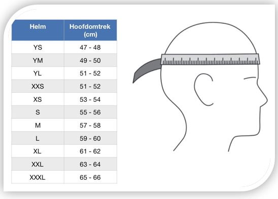 De maat van de helm is zeer belangrijk als je van plan bent om online een helm te kopen. In een winkel heb je de mogelijkheid om de helm te passen, wat online uiteraard niet mogelijk is. Daarom hebben wij met betrekking tot het bepalen van de maat van de helm een uitgebreide beschrijving met matentabel beschikbaar om de juiste maat helm te kunnen opmeten. Dat het bepalen van de juiste helm maat belangrijk is, spreekt uiteraard voor zich. Een te kleine helm zal bijvoorbeeld niet eens passen, maar een te grote helm zal te veel ruimte overlaten. Hier volgen een aantal stappen die uitleggen hoe je jouw helm maat bepaalt. Houd er rekening mee dat richtlijnen zijn om de maat te bepalen en dat elk hoofd weer anders is.