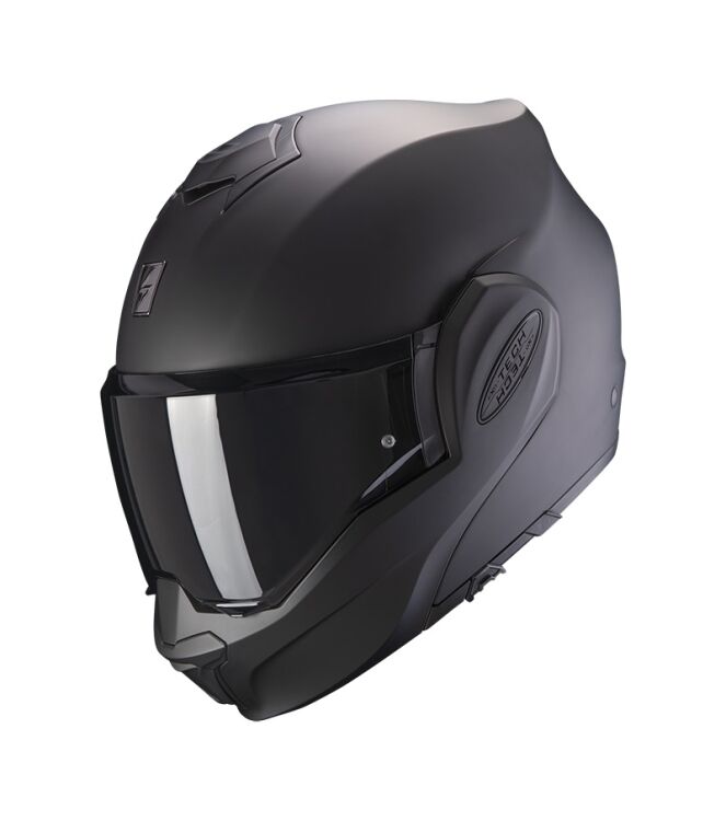 Nieuw is de Scorpion EXO-TECH Flip-Back systeemhelm, herkenbaar aan de eigenschap dat de kinbak helemaal naar achter kan.