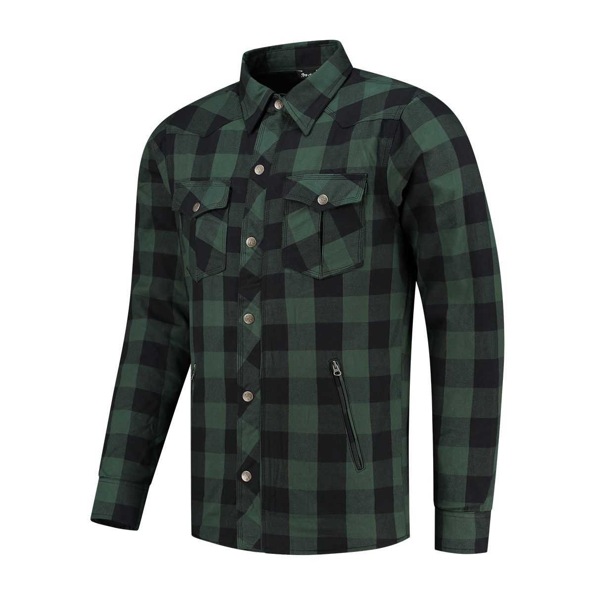 Gemaakt van 100% hoogwaardig katoen en voorzien van kevlar op de impactgebieden zoals ellebogen, schouders en rug.