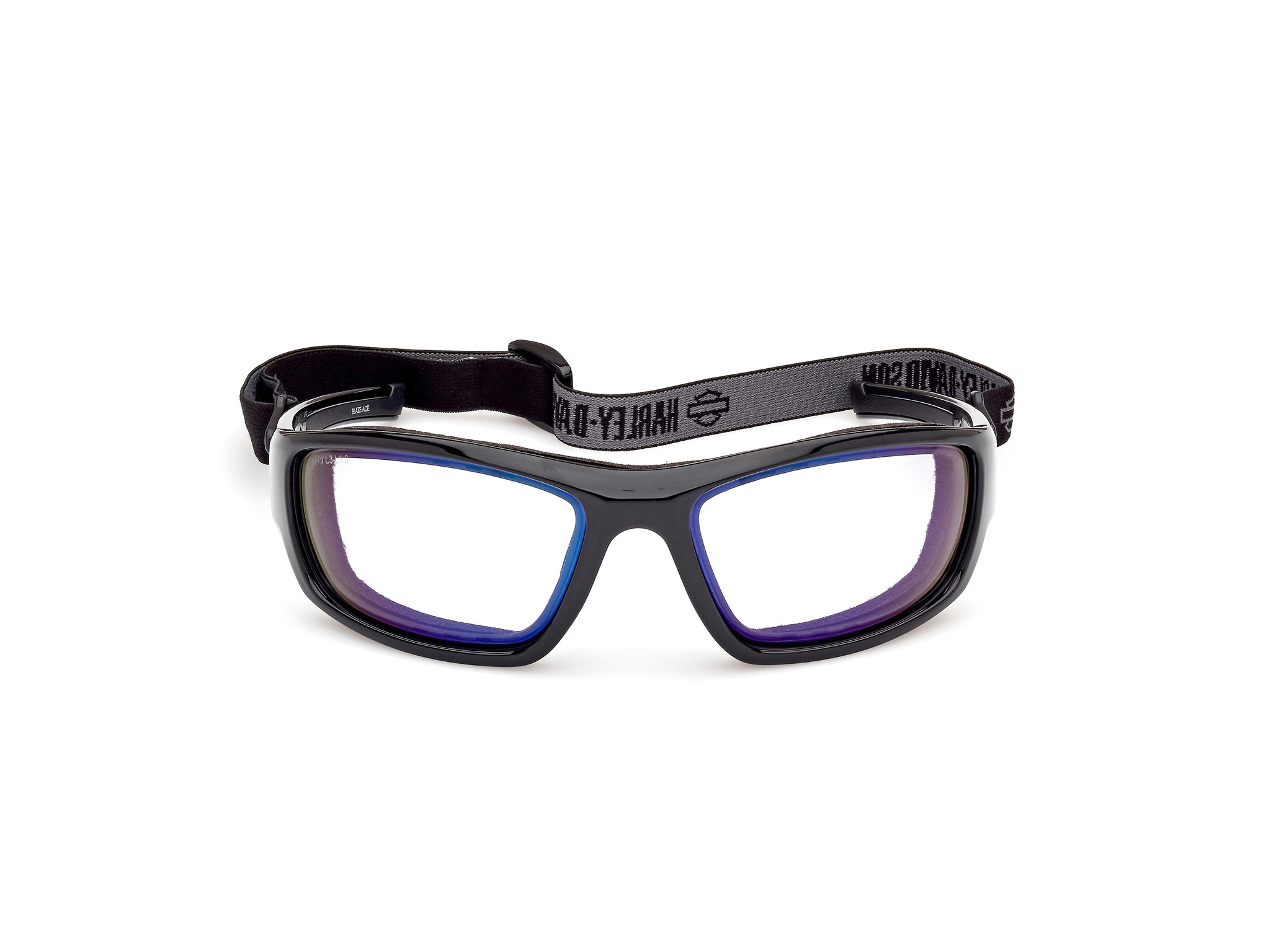 • Blauwe mee kleurende lenzen in een glanzend zwart frame